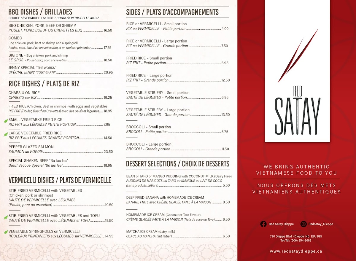 Welcome to Red Satay Dieppe, a culinary gem nestled at 790 Dieppe Blvd, Dieppe, NB E1A 9G5. This restaurant has rapidly gained a reputation for its delectable menu, which blends traditional flavors with a modern flair.